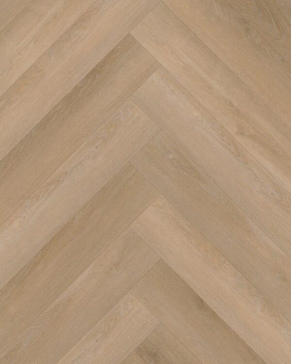 De Attico Visgraat XL 81 heeft een prachtige, natuurgetrouwe houtlook dankzij de register embossing – een voelbare houtnerf die de vloer nauwelijks te onderscheiden maakt van echt parket. De XL-planken meten 75 x 15 cm, waardoor het visgraatpatroon extra groot en stijlvol oogt.