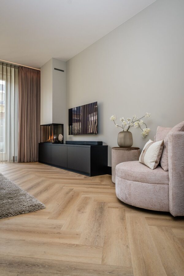 De Belakos Palazzo Visgraat XL kleur 75 PVC vloer is waterbestendig, vuilafstotend en slijtvast, en staat bekend om zijn lange levensduur. Met grote visgraatplanken van 76,5 x 15,3 cm geeft deze XL visgraatvloer je interieur een elegante en tijdloze uitstraling.